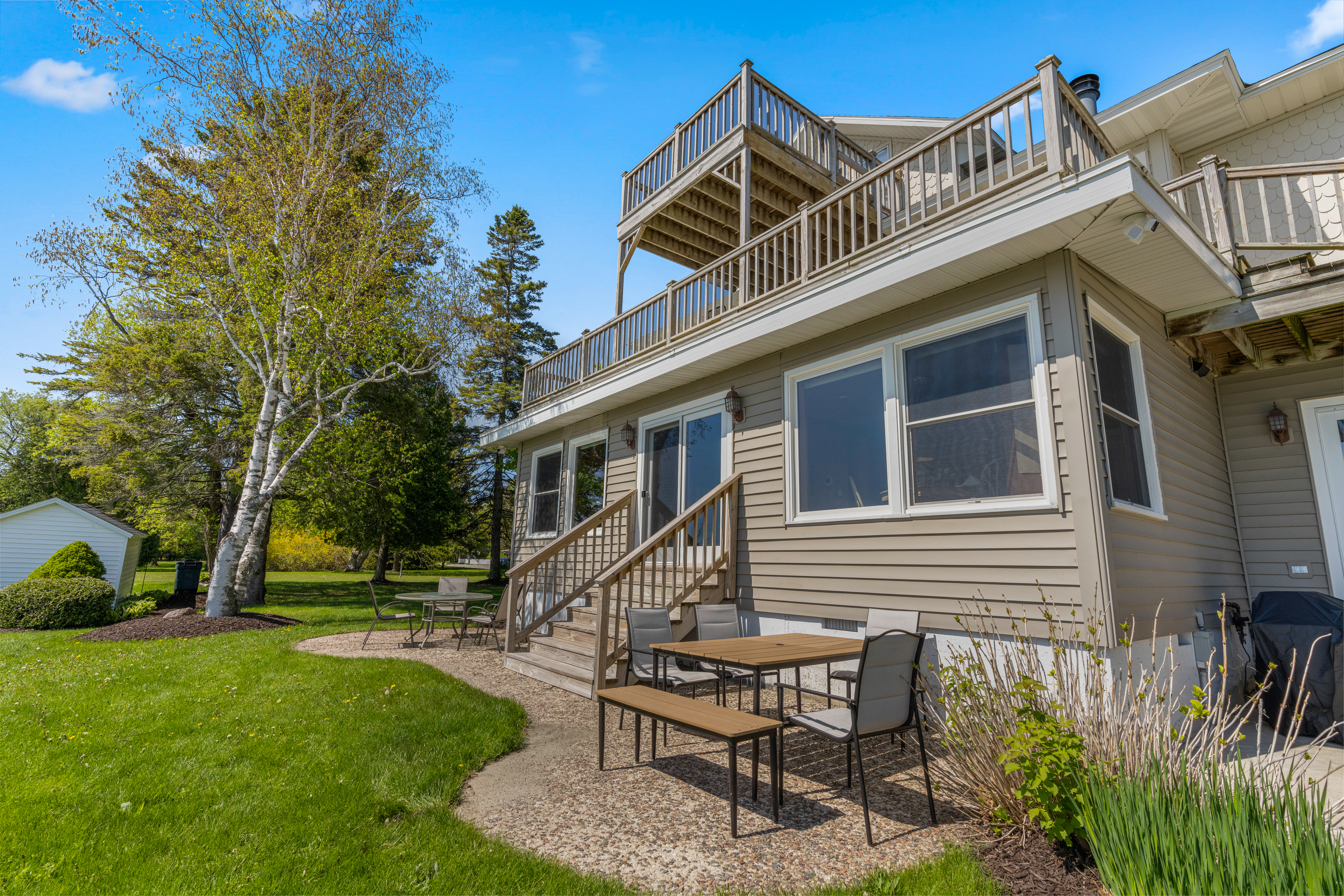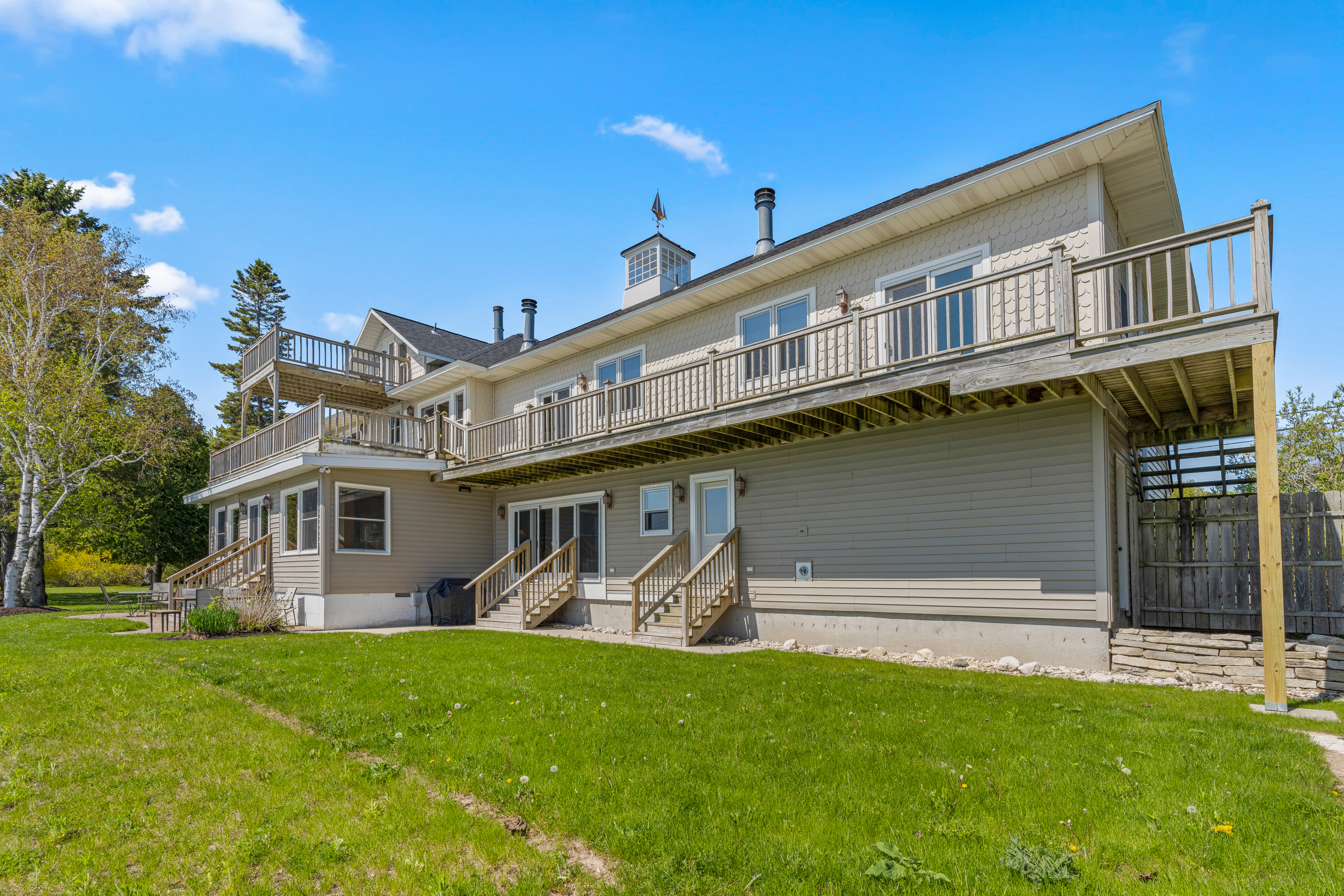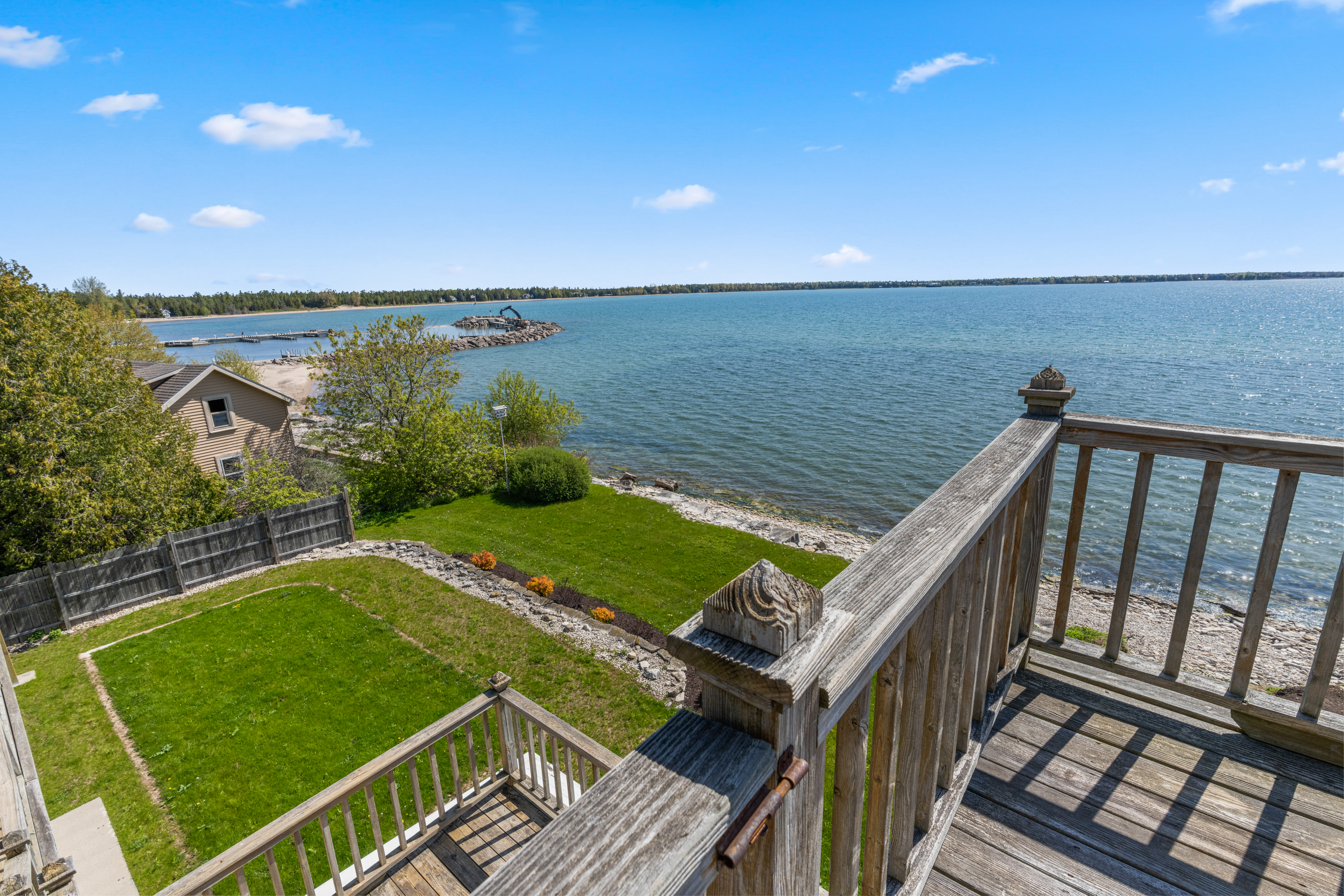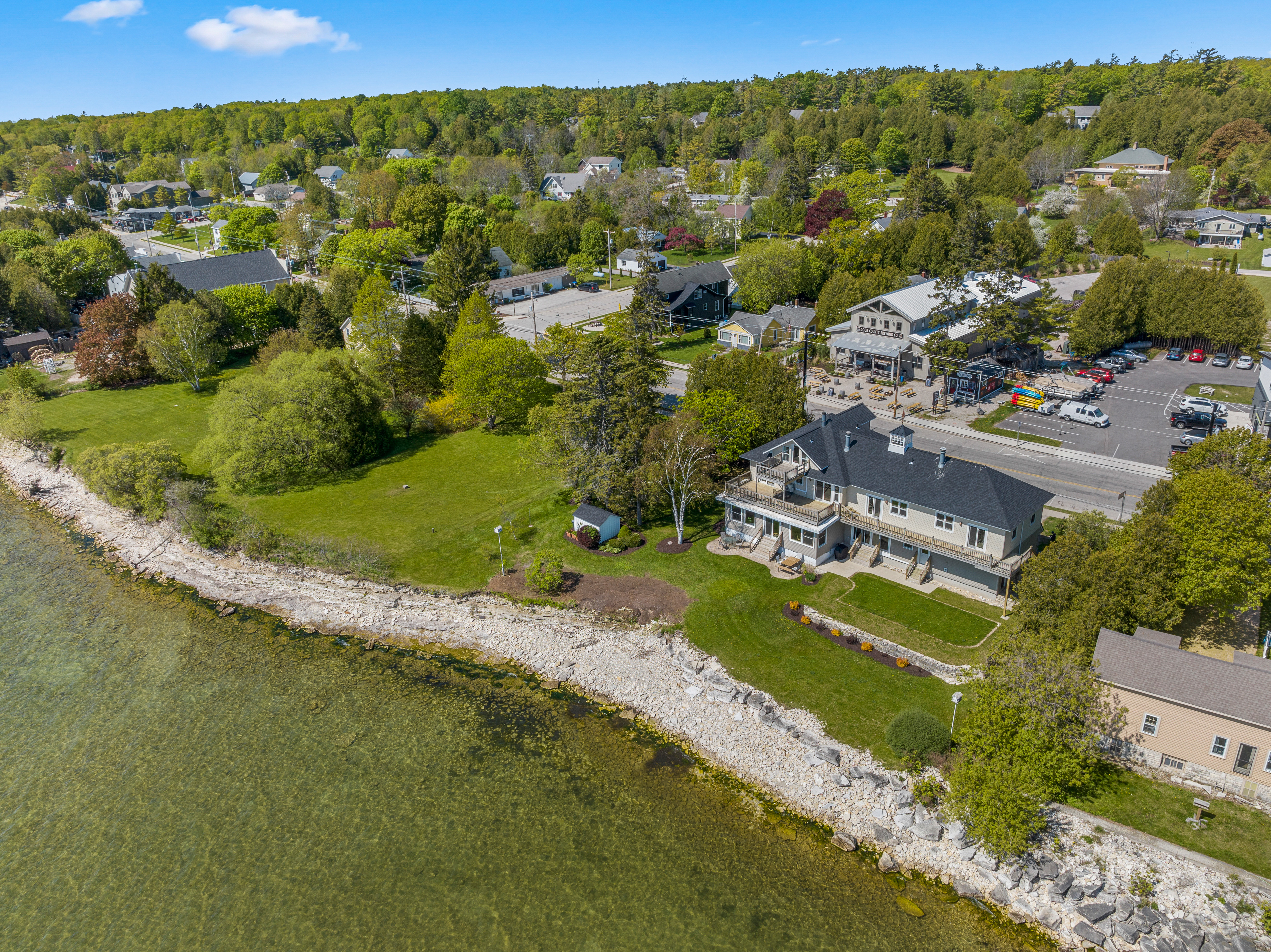 Perfectly situated in the heart of town with over 150 feet of lake frontage in your backyard. The large yard offers expansive views of Baileys Harbor, the lighthouse, and Lake Michigan. Enjoy three levels of patios and decks, all lake facing, to take in the incredible views. Plus, a classic, town facing covered front porch is the perfect spot to watch the folks walking by as they move around town. This heart of town location is steps from some of Door County’s finest dining, breweries, shops, marina, kayaking, charter fishing, and beaches.
