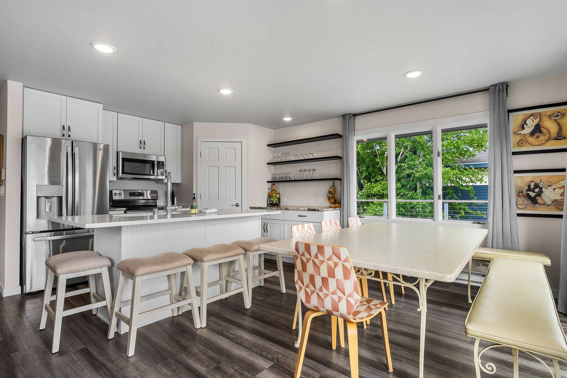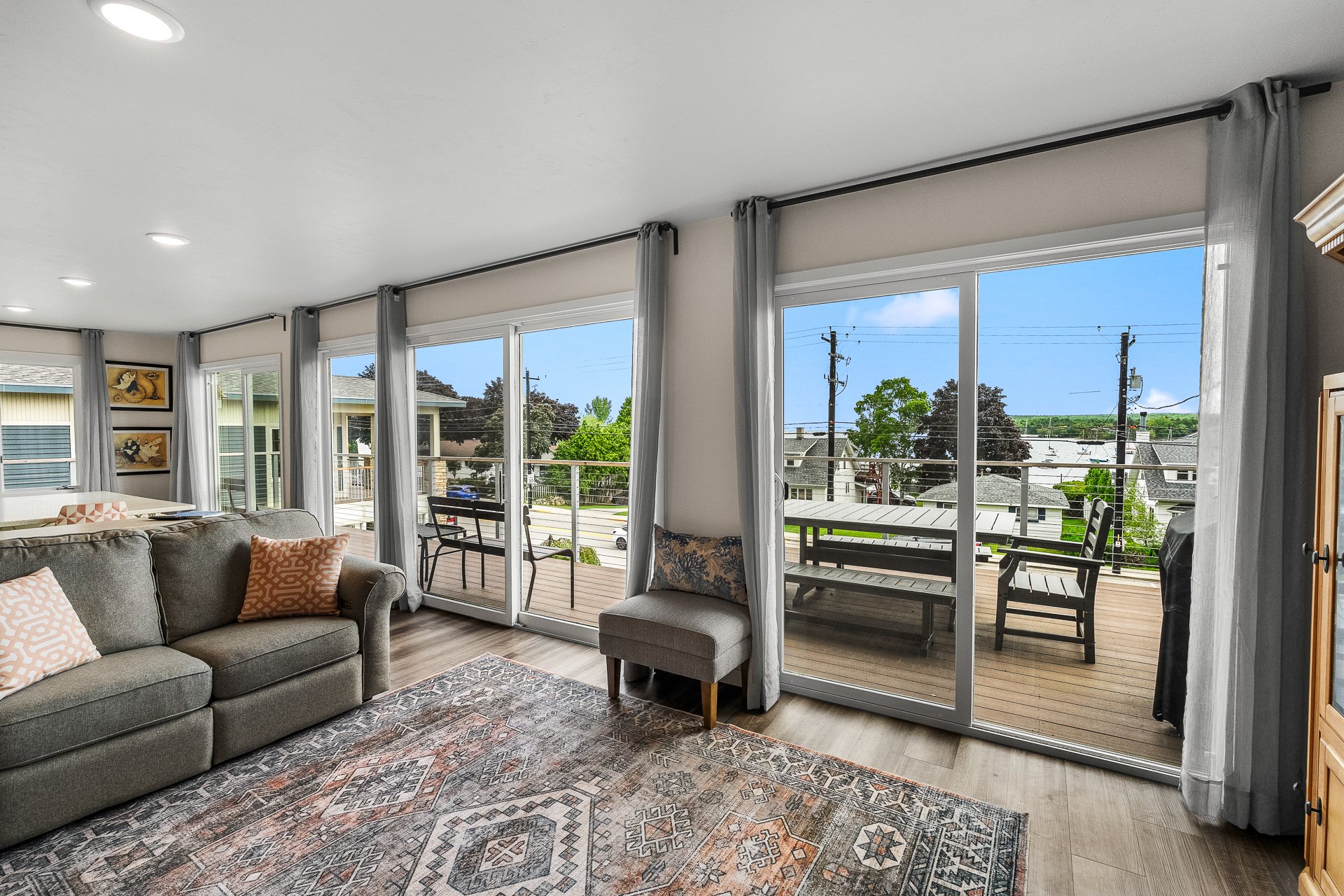 Welcome to Prosecco, hosted by Simple Life Rentals. Nestled in the heart of Downtown Fish Creek, this fully updated in 2024 upper penthouse offers an ideal retreat for families and groups seeking a relaxing getaway with the BEST view in town! With a perfect blend of comfort, convenience, and modern amenities, Prosecco provides a bird's eye view of Fish Creek’s Main Street and waterviews of Fish Creek Beach, ensuring a memorable stay for all our guests.