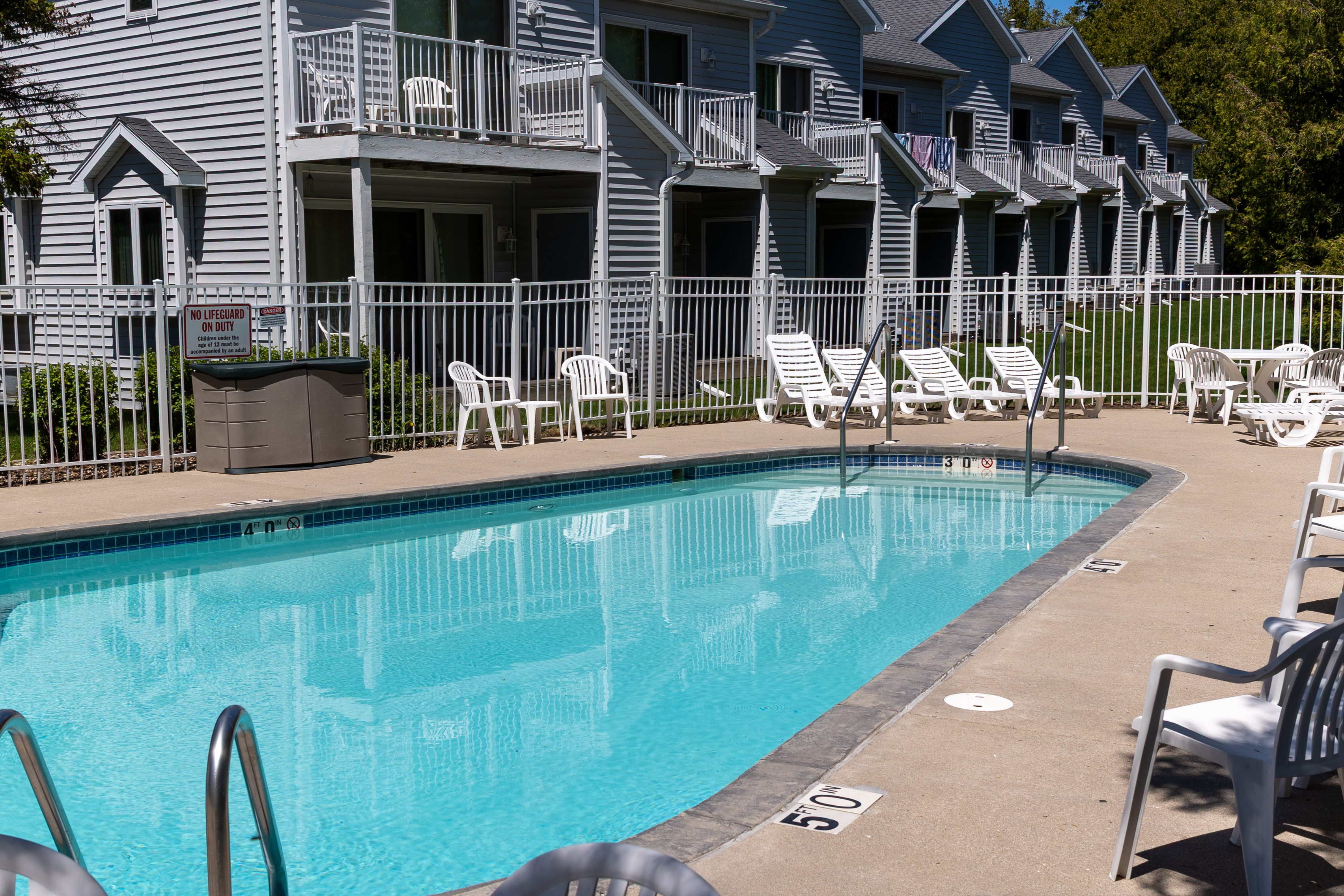 No trailer, camper, or boat parking allowed in complex (public lot behind Fish Creek library.)