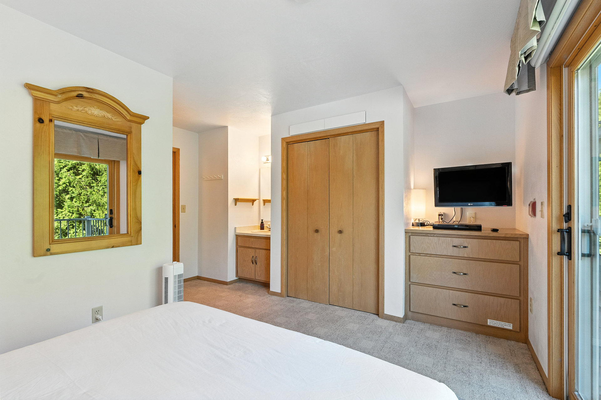 Bedroom 1: 2nd floor, Queen bed (sleeps 2), additional Vanity and Sink, TV