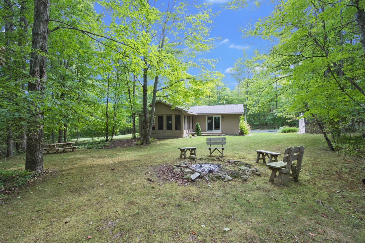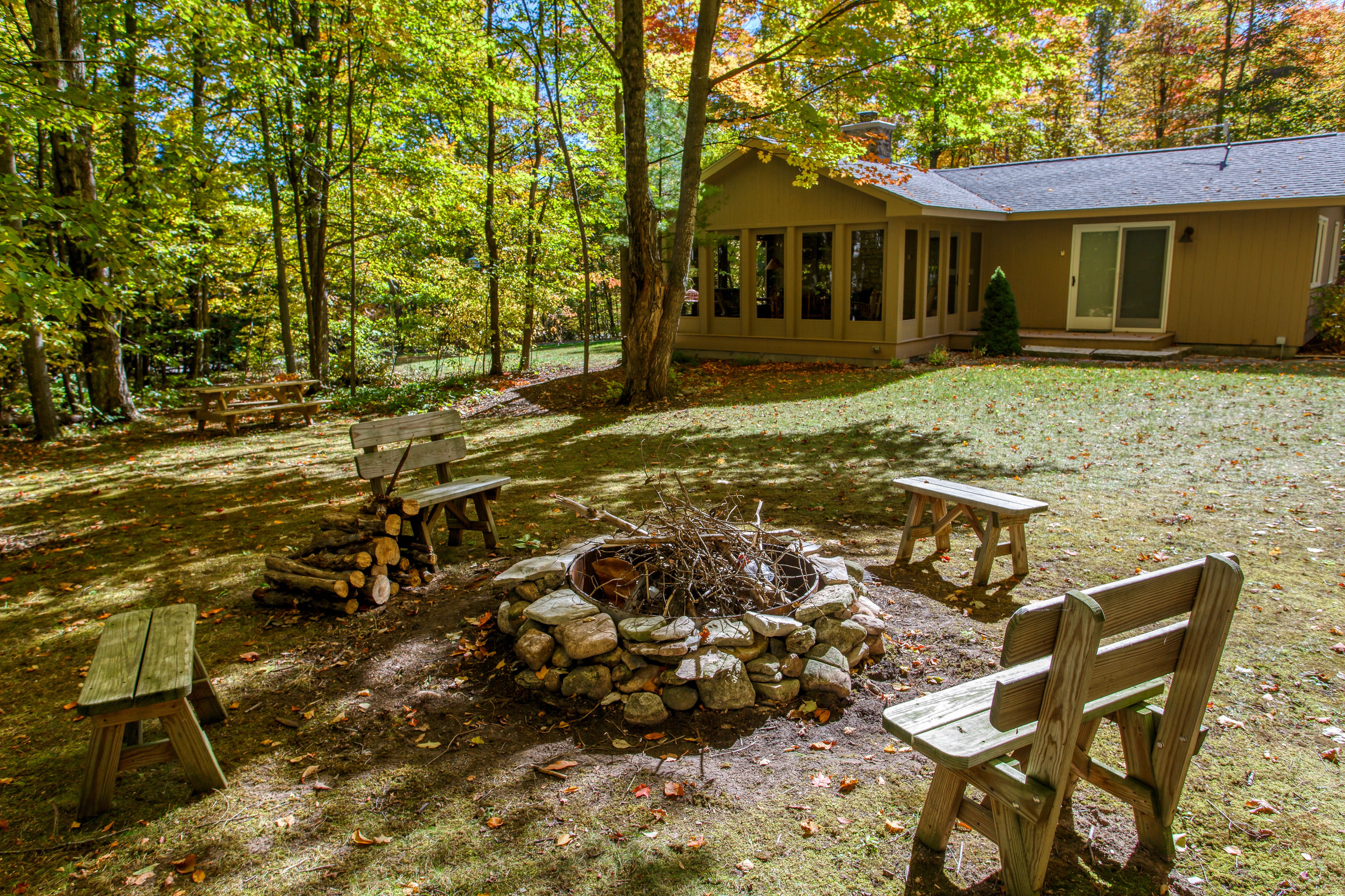 The front yard has a porch with an outdoor patio set that's perfect for morning coffee. Enjoy the backyard during the evening roasting marshmallows around the firepit. Plenty of outdoor seating for your group!