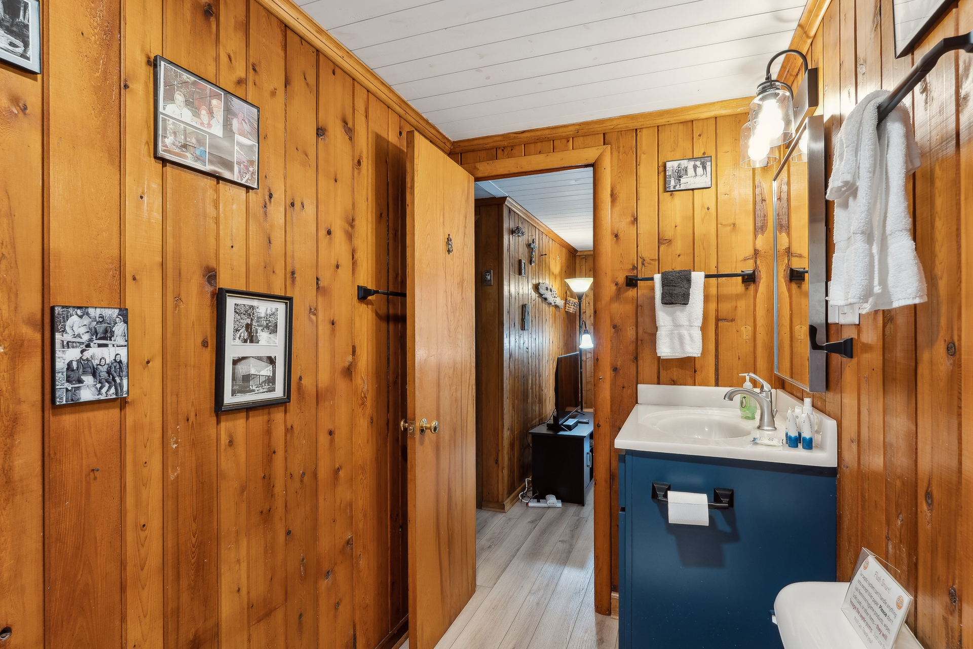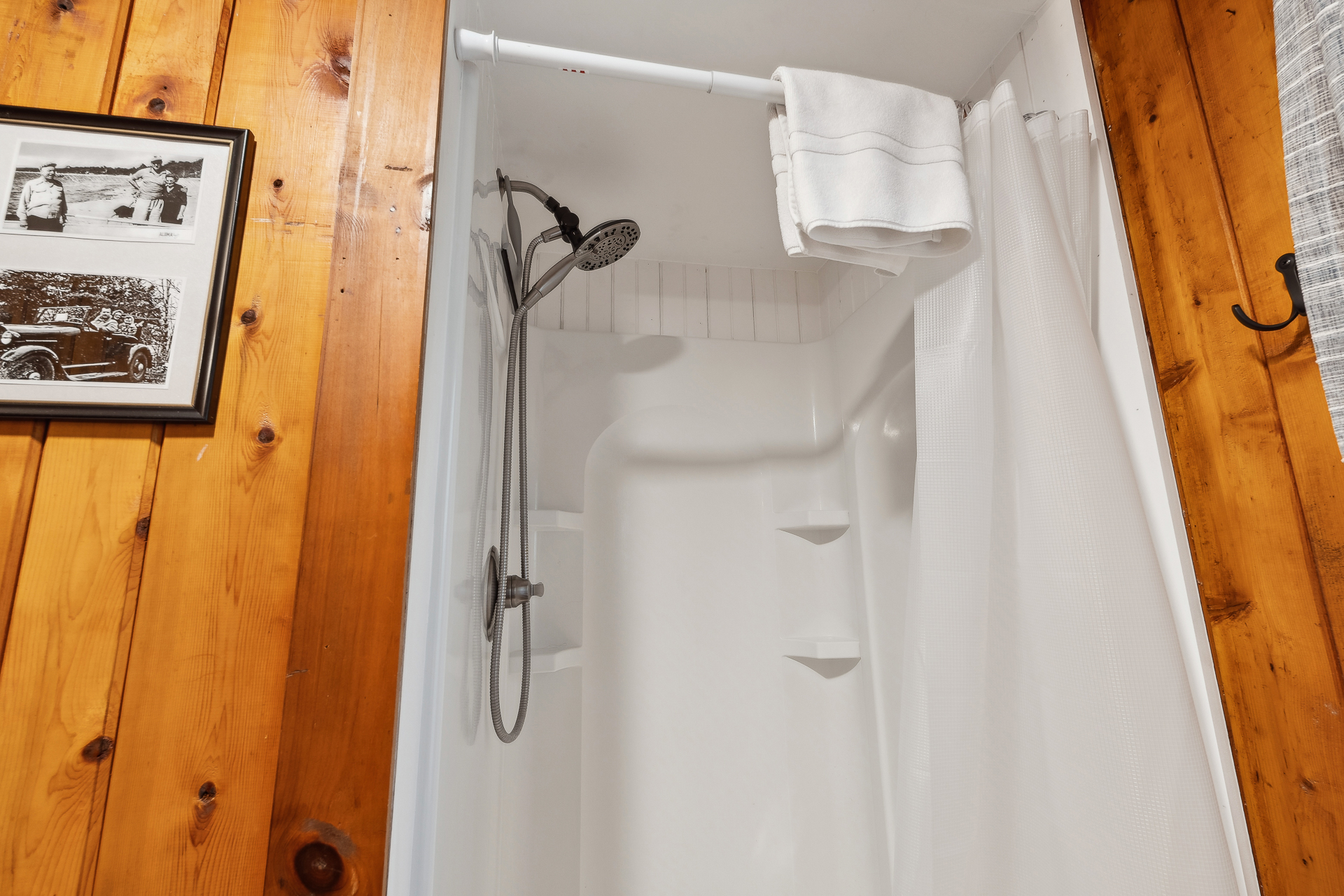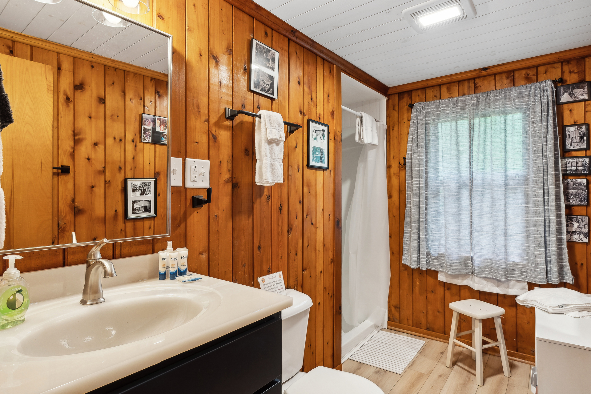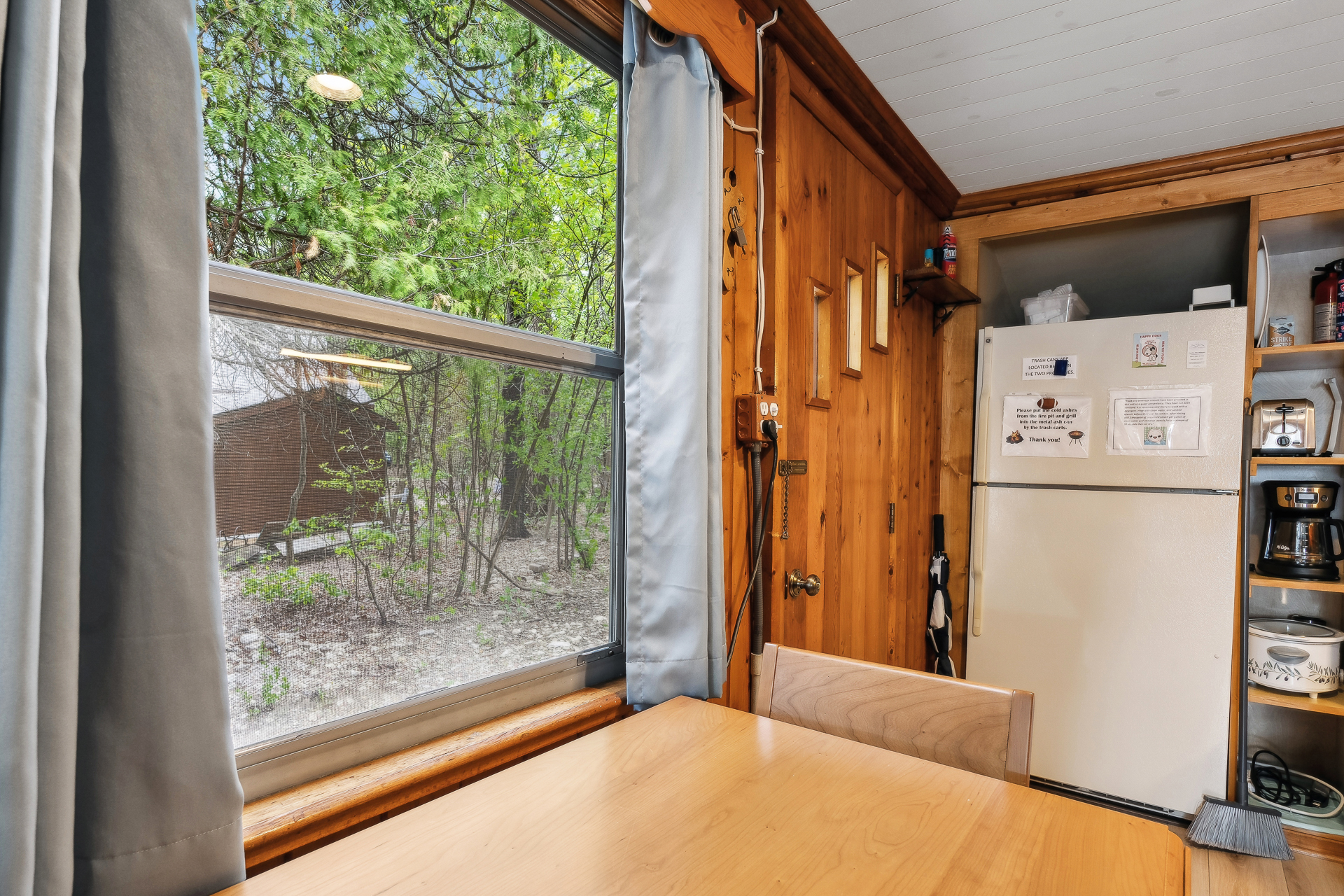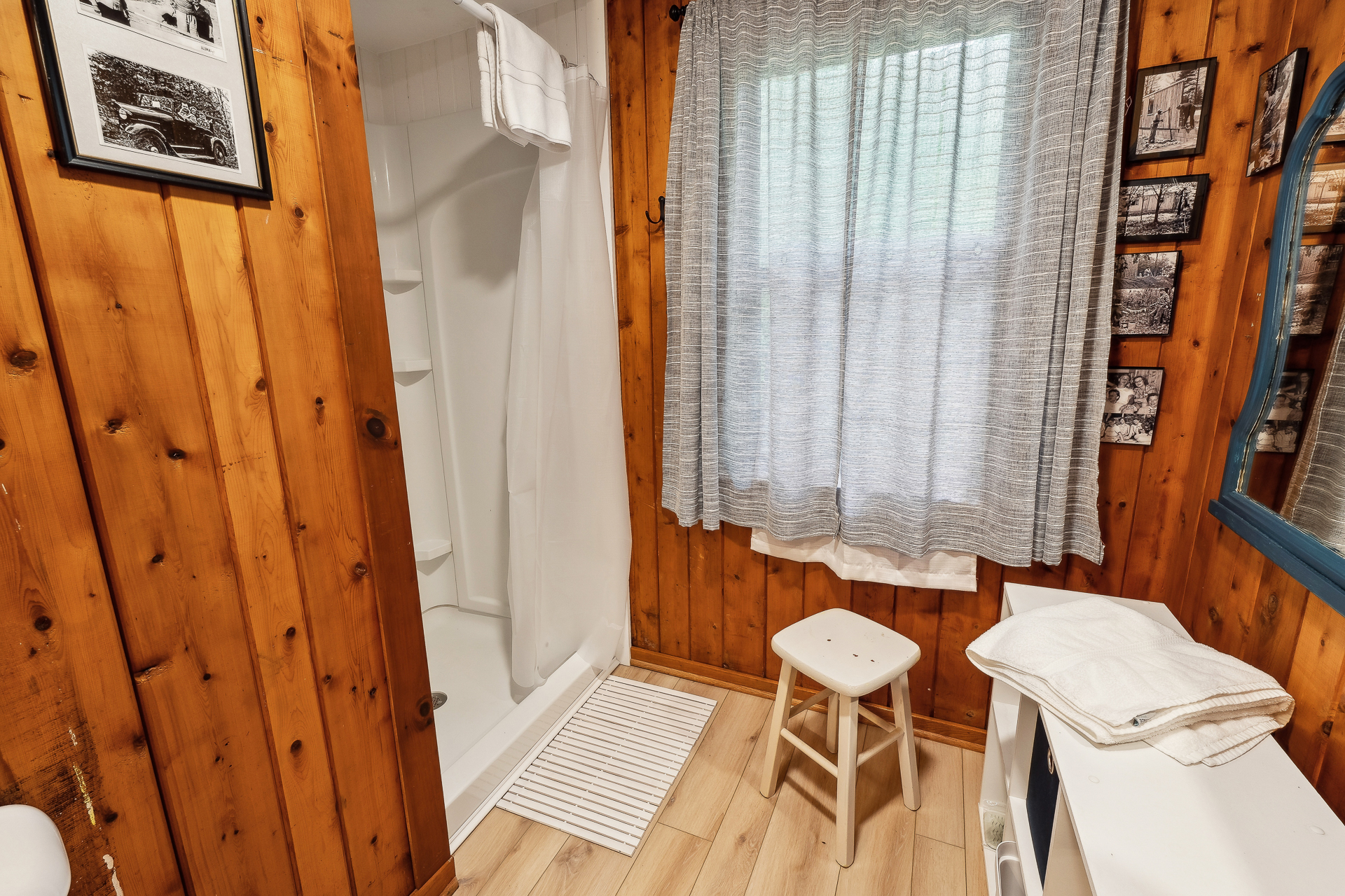 Needless to say my wife has commented on the number of people the lone bathroom held. Having to dogs of our own we were not unused to having company while in the bathroom, but the amount of photos on the bathroom wall was somewhat of an eye opening experience. Nevertheless we persevered. Having grown up in the early 60s we both had no problems adjusting to the lone a/c. We made use of the available fans plus a couple we brought. Reheat on we don’t cook on vacation. That said we visited our favorite restaurants but discovered a new favorite “Birmingham” just down the road from the cabin, ooooooh so good. Had filet and deep fried lobster. Yummy! Door never disappoints, so we enjoyed touring new areas and meeting new friends. All in all another beautiful place in Door we thoroughly enjoyed.Jerry H. - Posted: 7/22/2019