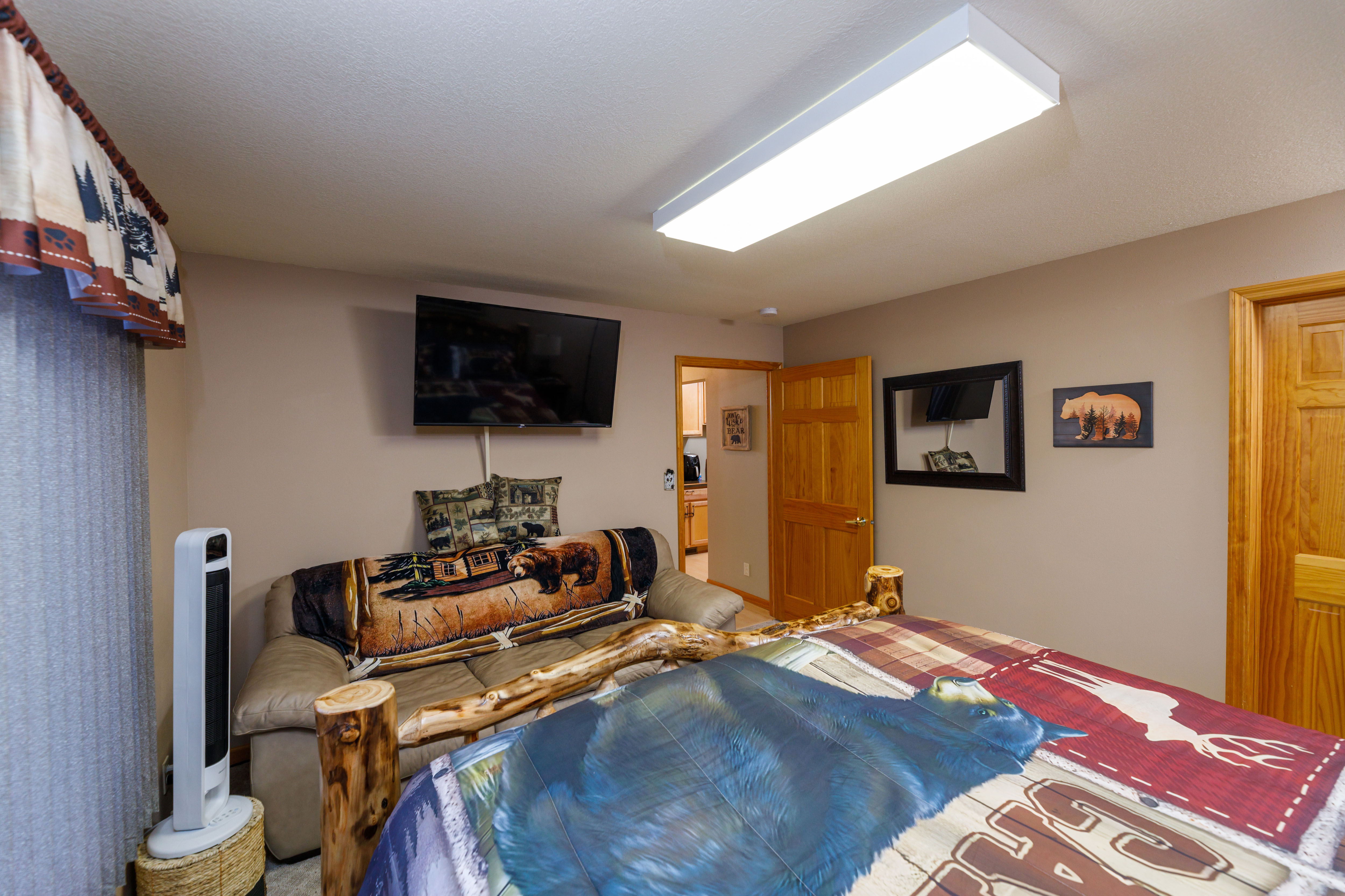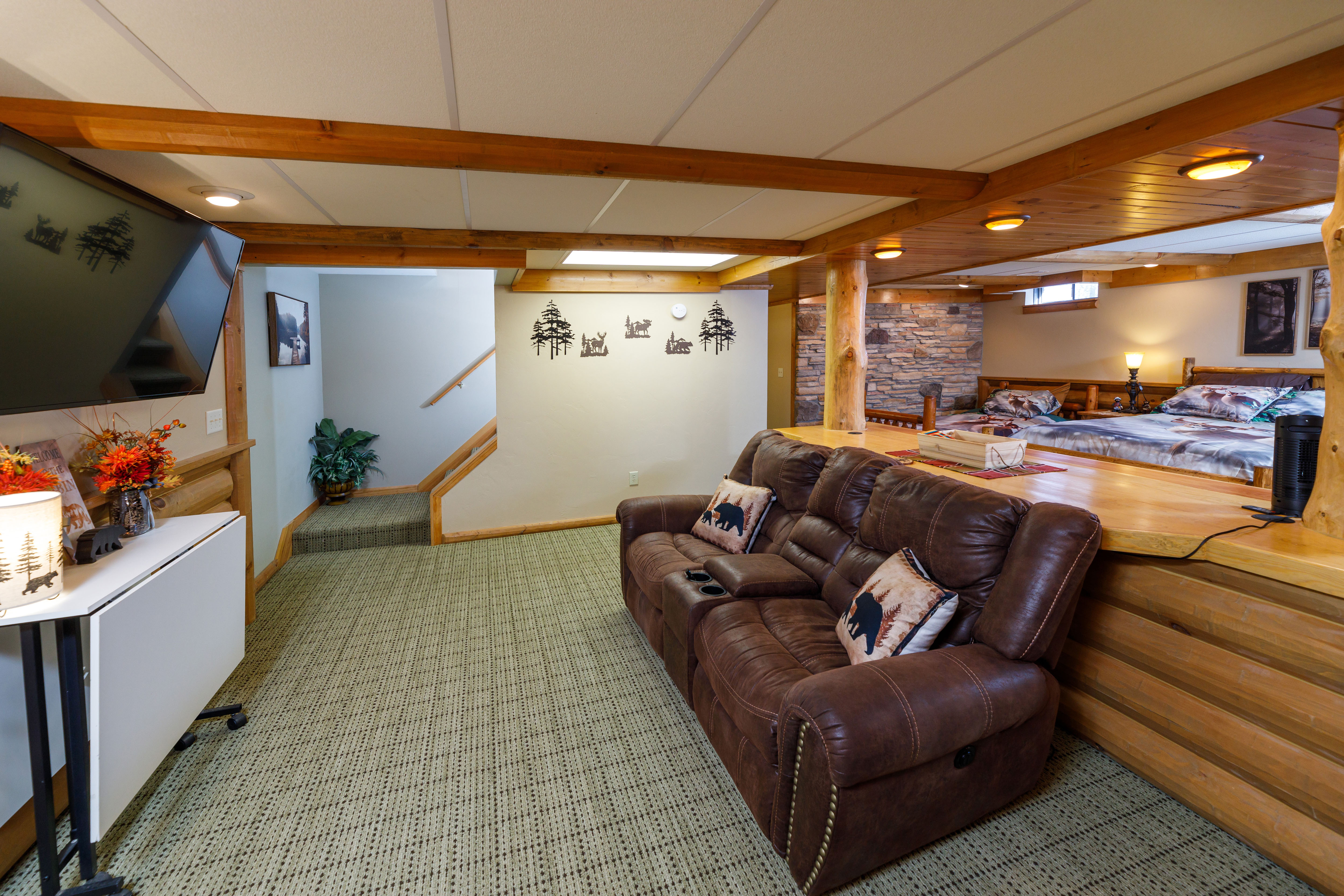 Additional sleeping space: Basement living space offers a Queen size bed, 2 Twin beds, Smart TV, extra pillows and blankets