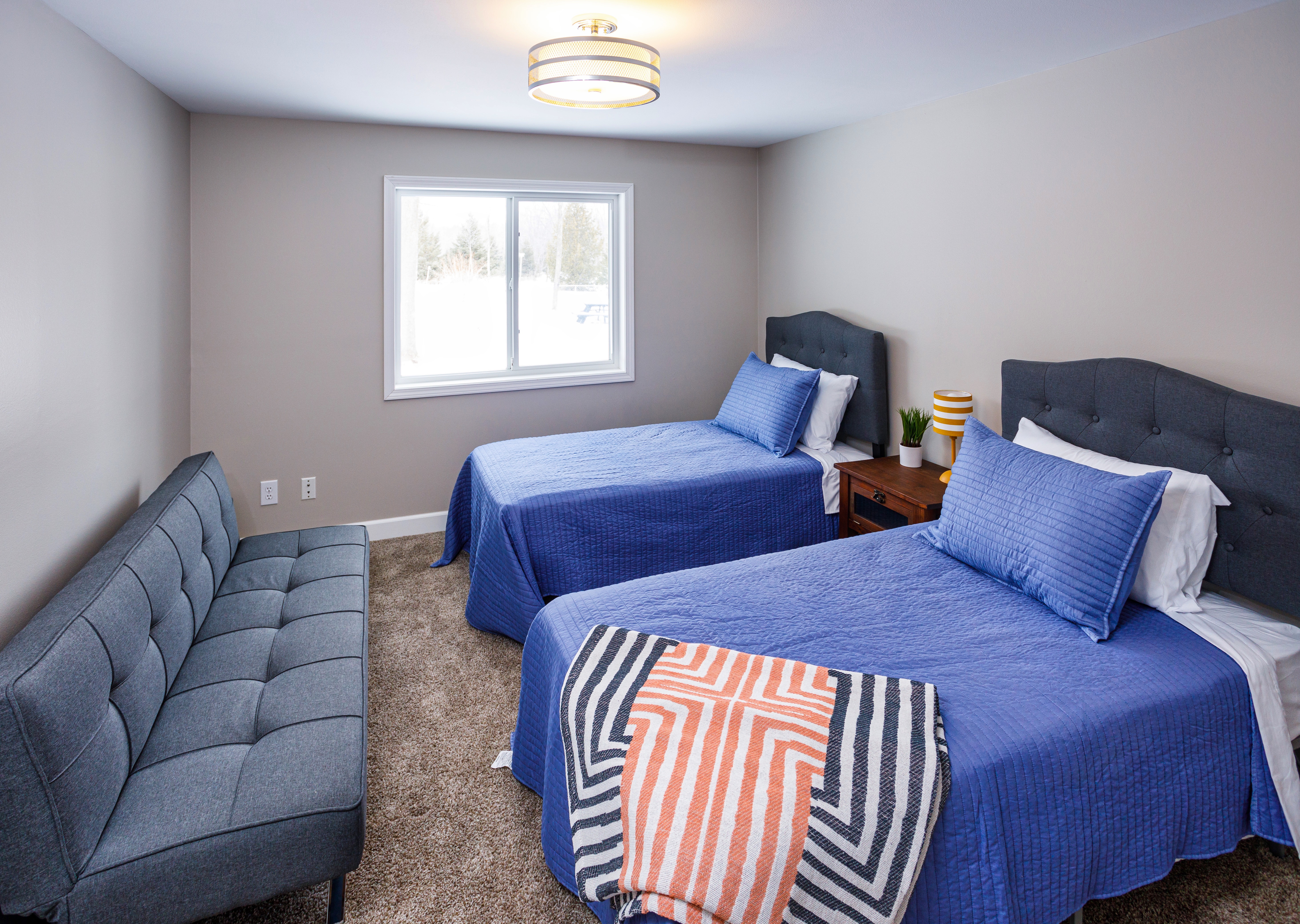 Bedroom 3: 2 Twin size beds and 1 Full size futon, hangers, extra pillows and blankets