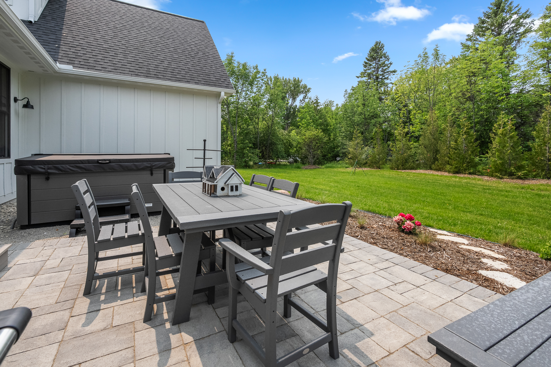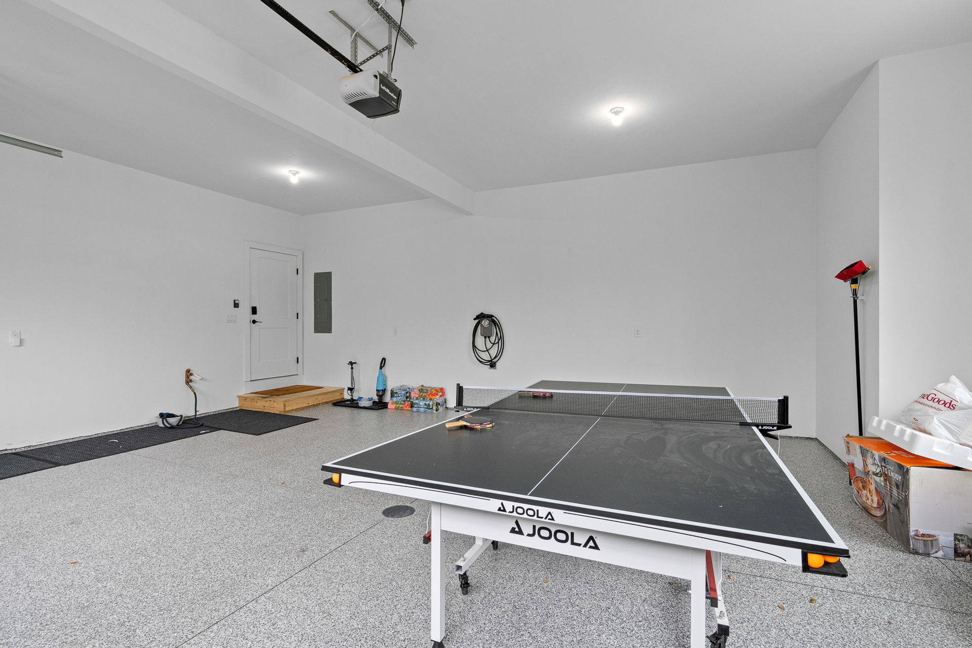 Upstairs is a retreat all on its own, with a large bonus room that includes an oversized couch and television, as well as a workout space with a Peloton bike, basic yoga equipment, and weights. The comfortable second floor bedroom is adjacent to the fourth bathroom. The backyard provides year round entertainment, including a hot tub. The attached heated garage provides parking for two cars or can be used for playing ping pong, with the provided equipment and offers EV Level 2 charging. This home is flawless in every detail.