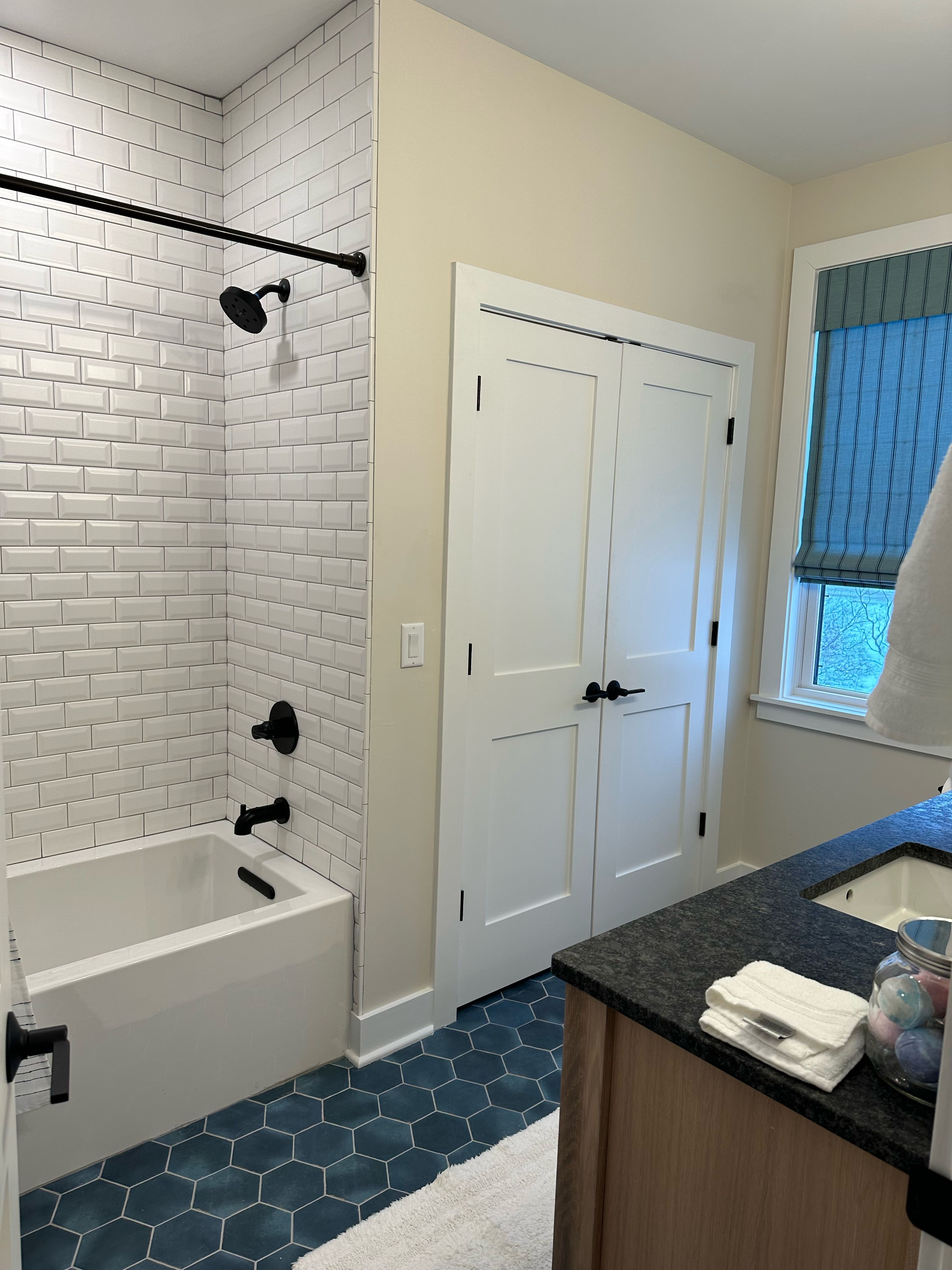 Bathroom 2 (main level): Ensuite- Full bathroom with tub/ shower combo, hair dryer
