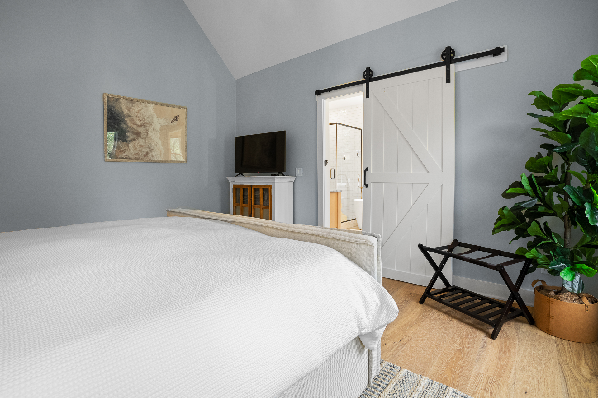 Bedroom 1 (main level): King size bed, ensuite bathroom
