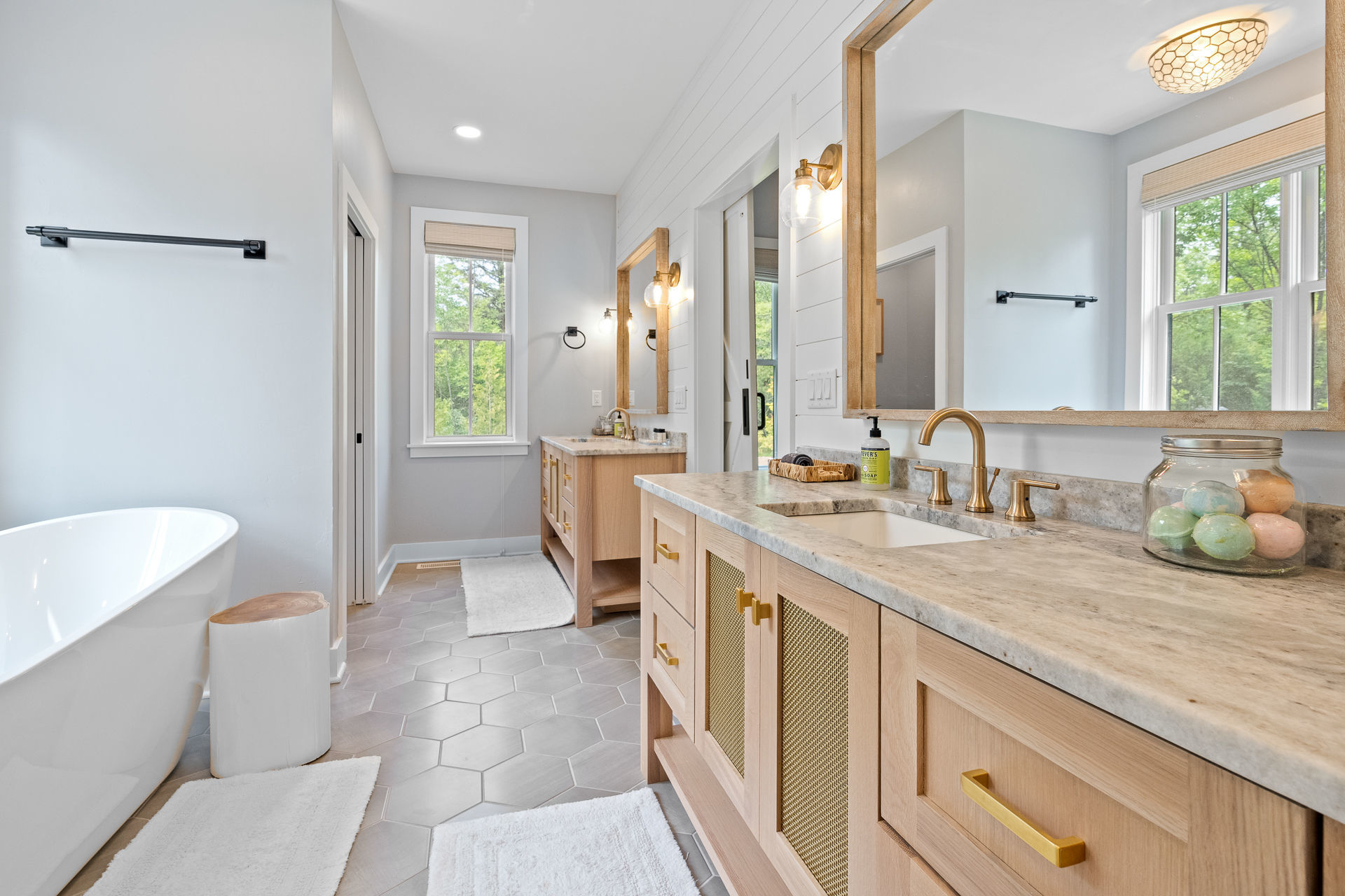 Welcome to Vita Huset, one of Door County’s premier vacation homes, hosted by Simple Life Rentals. Located in charming Sister Bay, this newly constructed in 2023 home provides the perfect hub for all your vacation activities. The main floor includes a designer kitchen with Café appliances, including a 36” stove and pot filler. Sip your morning coffee in the four seasons room with adjourning breakfast table. There are three bedrooms on the main floor (including the primary bedroom), all with en suite bathrooms. The primary bedroom is a separate retreat with a large vaulted ceiling and well-appointed bathroom--dual vanities, a stand alone soaking tub, and large shower. The main floor also includes a laundry room with front loading washer and dryer.