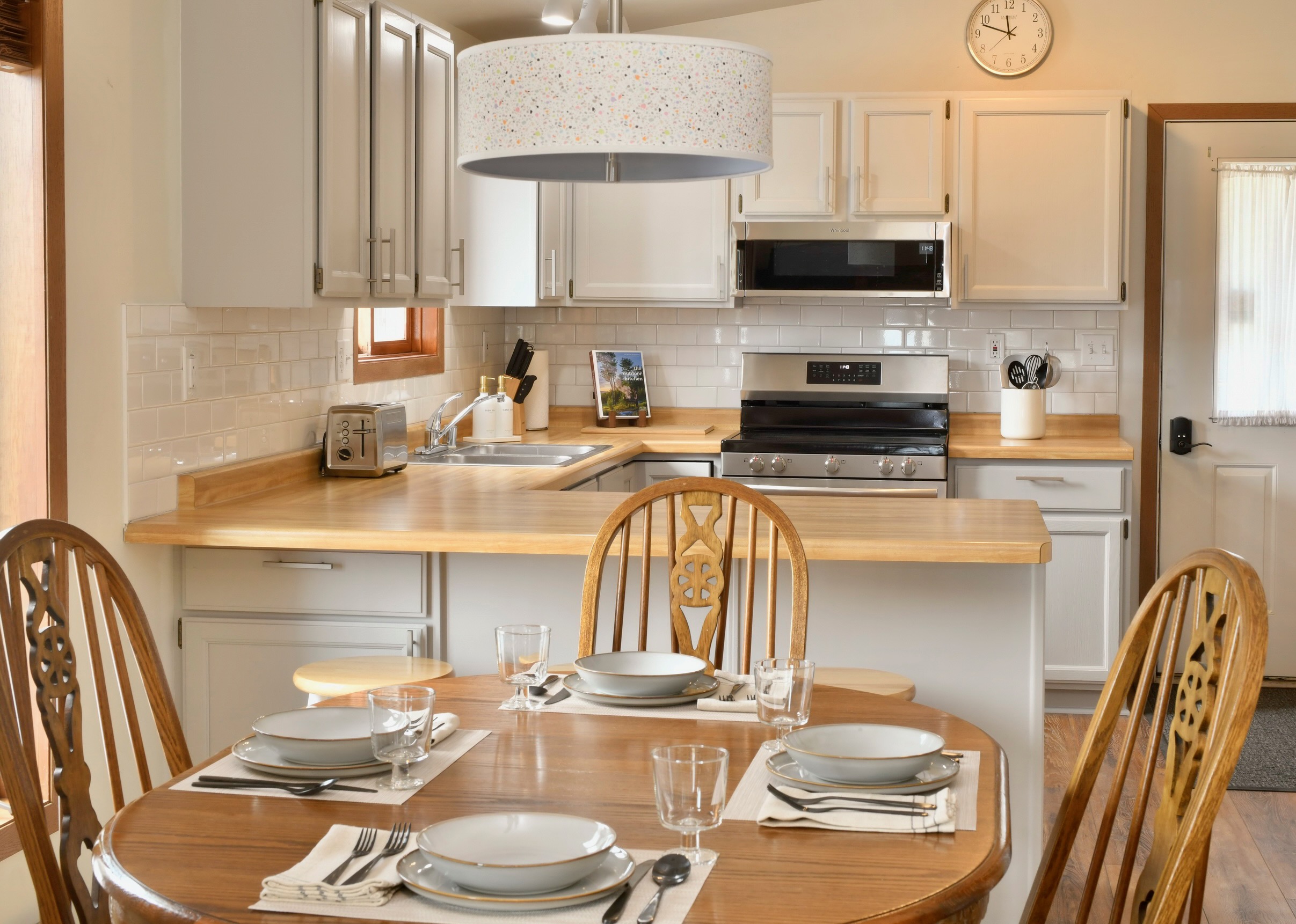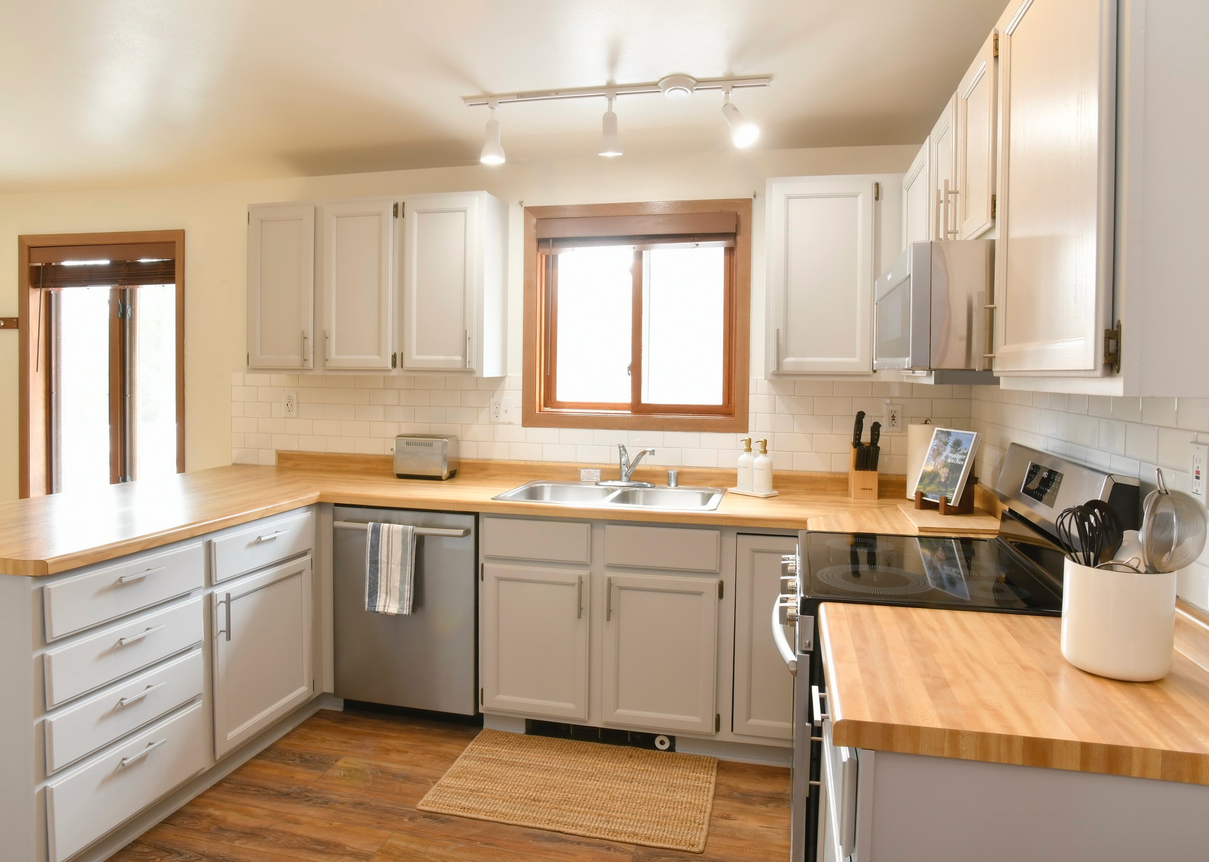 • A starter pack of essentials which includes toilet paper, paper towel, dish soap, dishwasher soap, hand soap, and garbage bags. Due to septic systems, we do not provide facial tissue. One each of travel size shampoo, conditioner, and body wash per full bathroom.