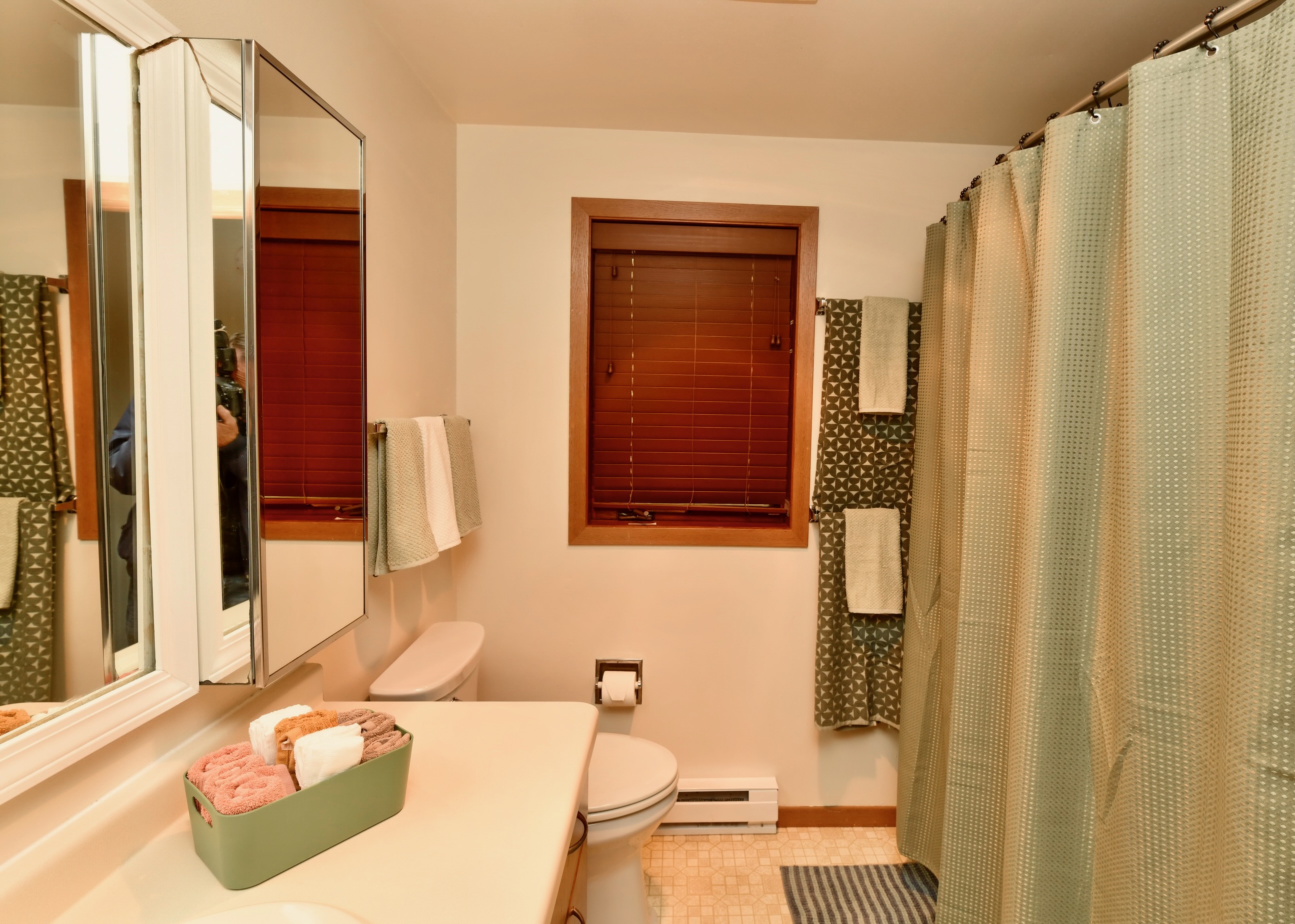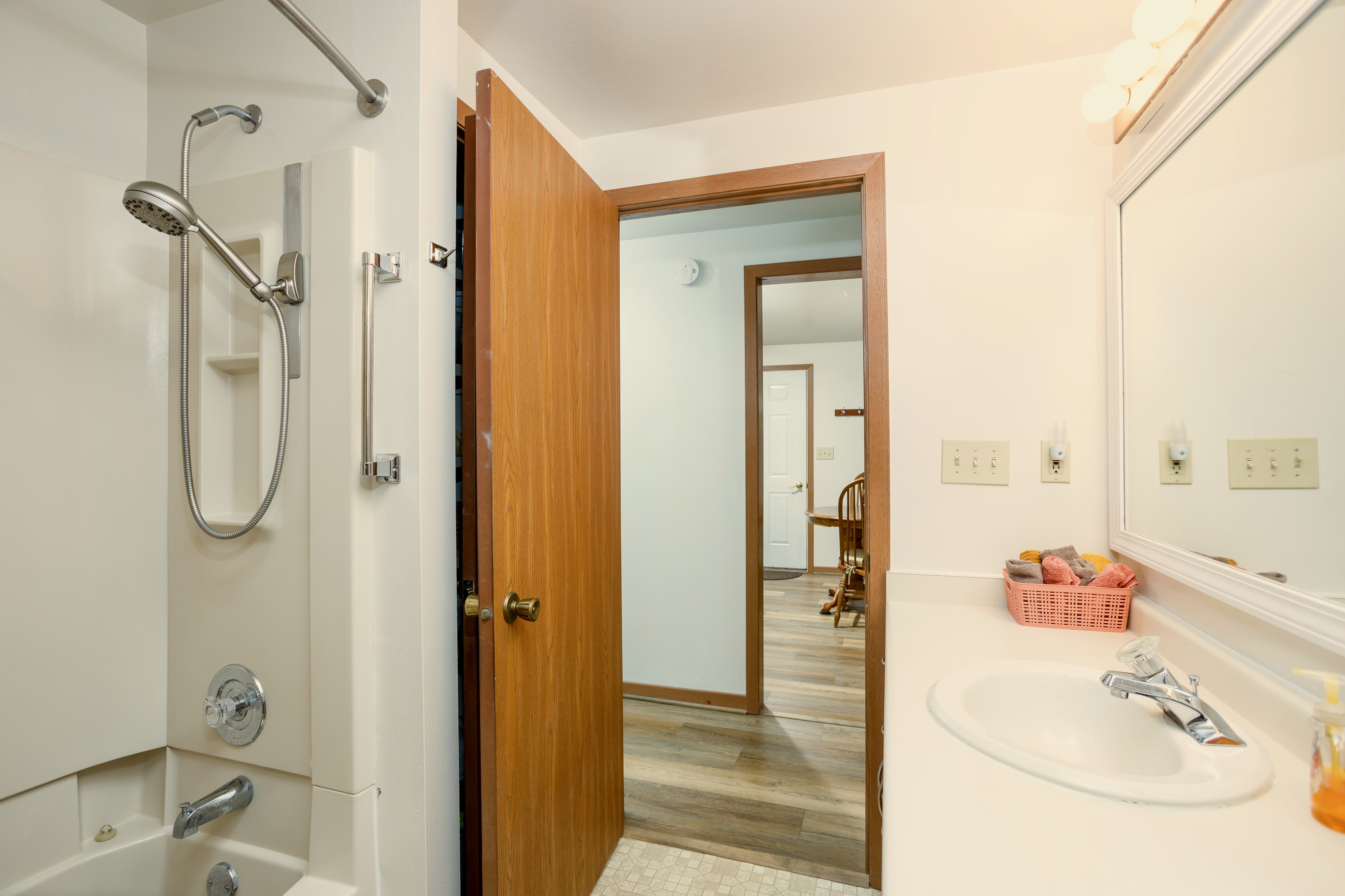 Bathroom 1: Full bathroom includes a shower tub combo + hair dryer