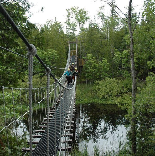 Experience a thrilling aerial tour over 20 acres of forested land, including a 150-foot suspension bridge and a dual-race line finish.