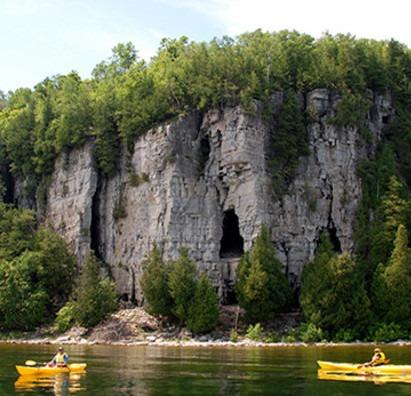 Known for its dramatic limestone cliffs and crashing Lake Michigan waves, it's a favorite spot for photographers and kayakers.